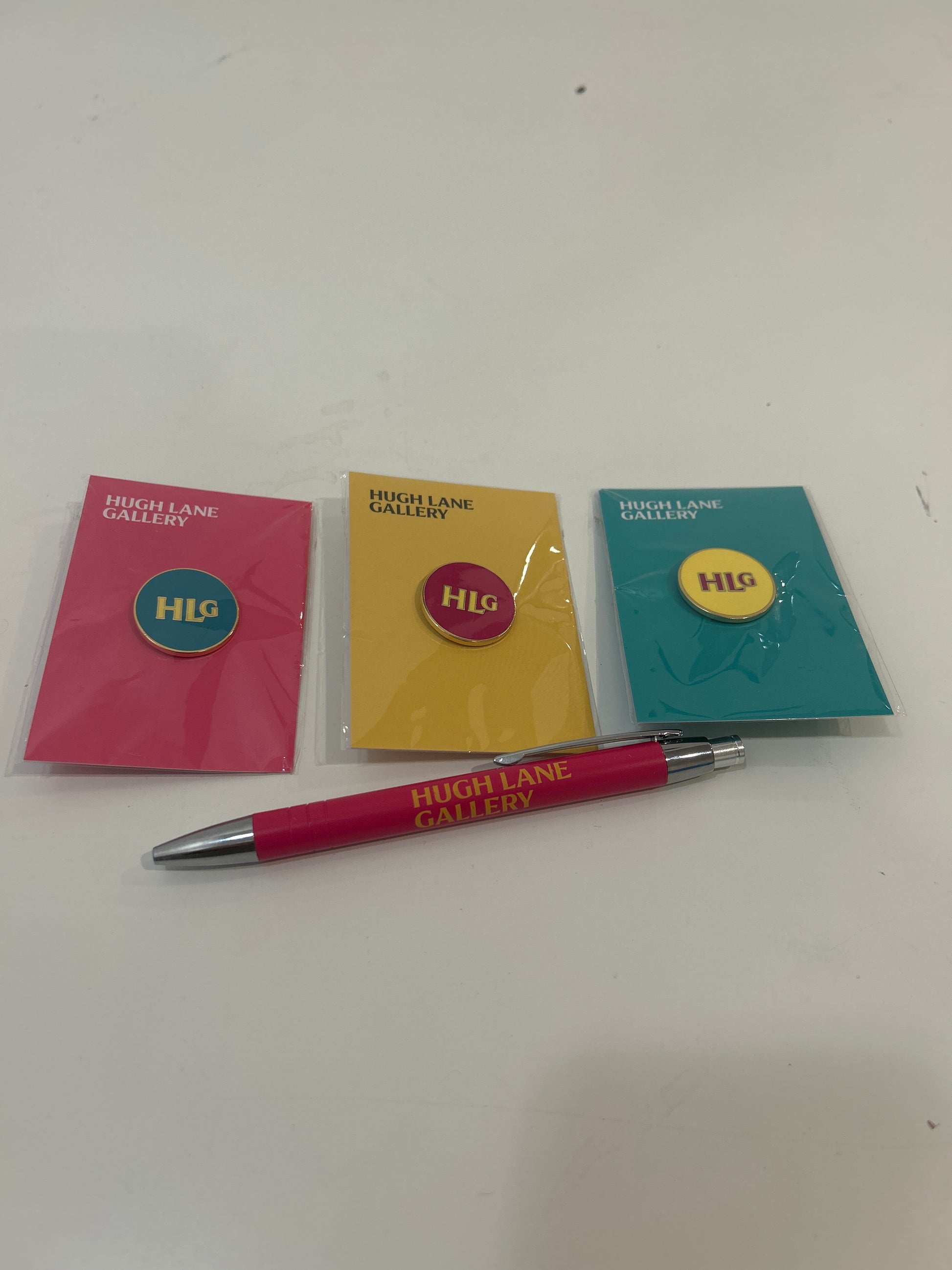 HUGH LANE GALLERY TEAL PIN WITH PINK BACKING CARD